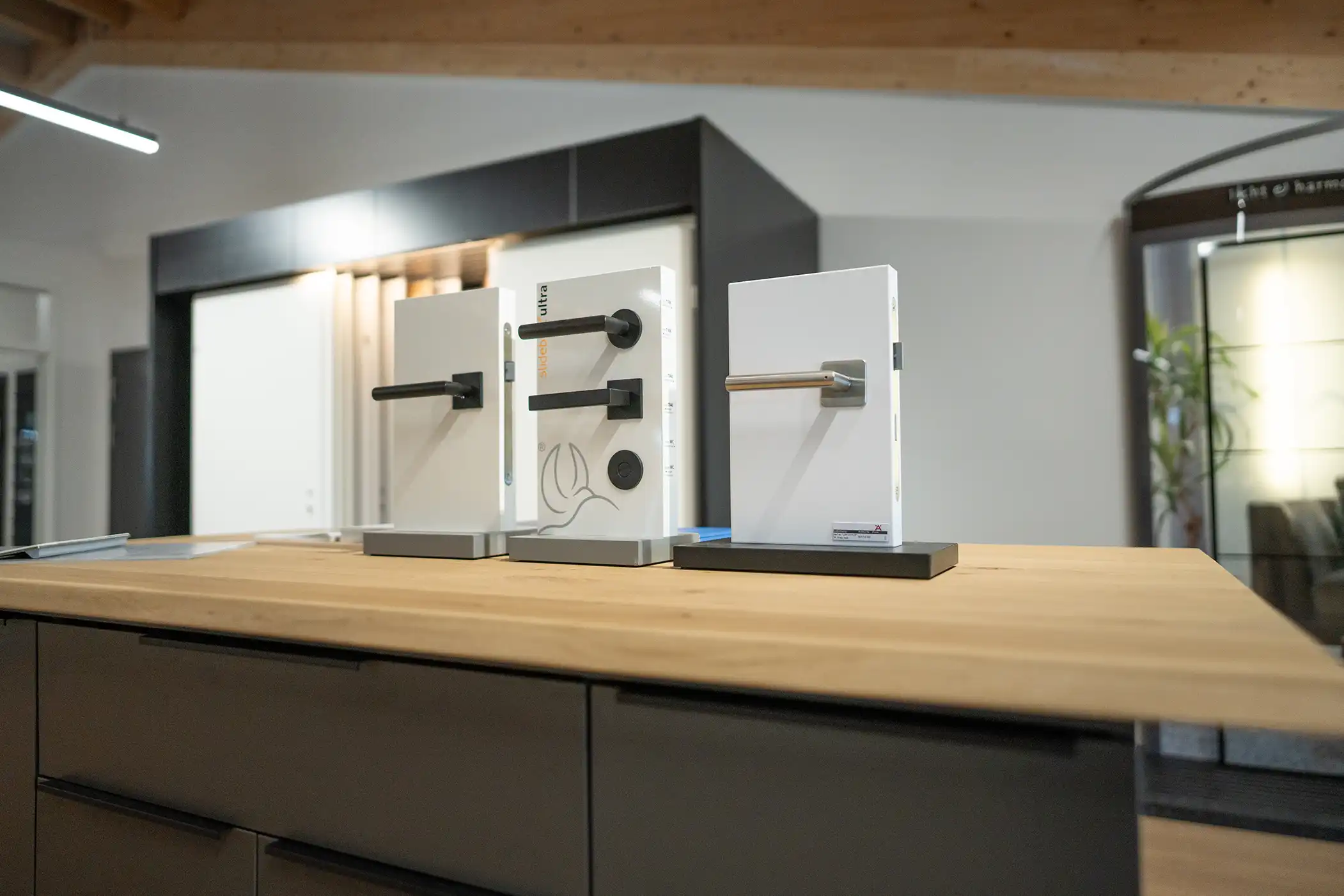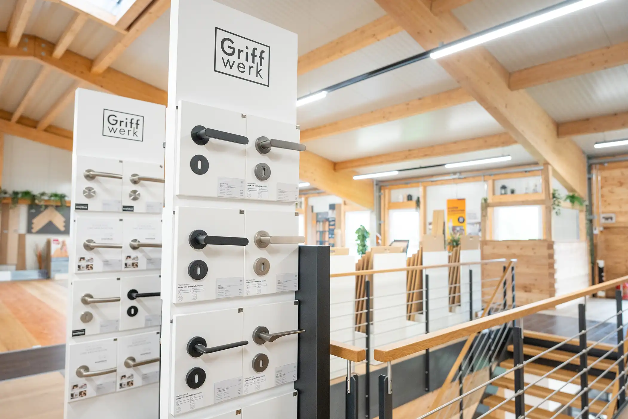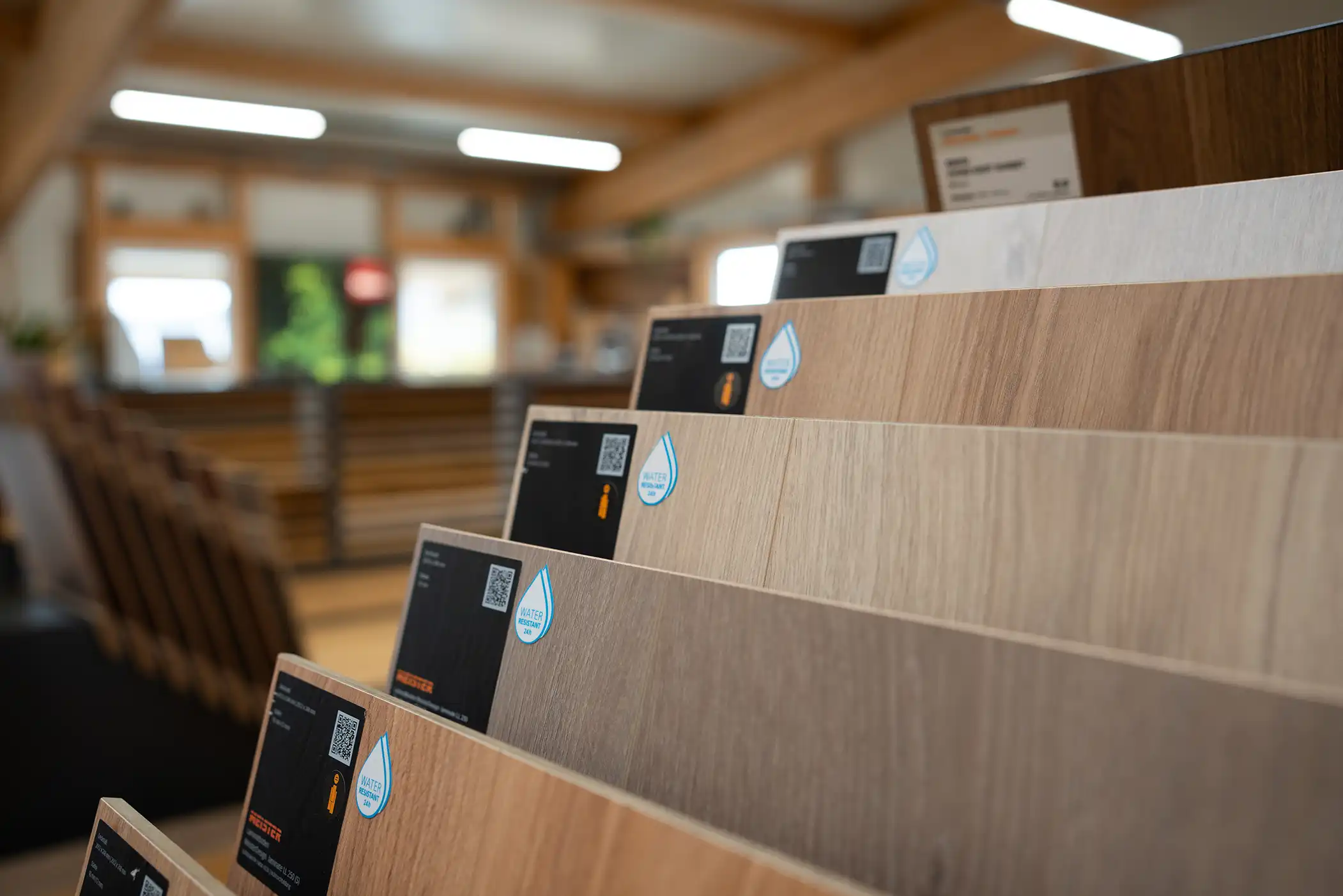 Wer Materialien nicht nur im Katalog sehen, sondern live erleben, anfassen und vergleichen möchte, ist in der Ausstellung vom Holzfachmarkt Embacher genau richtig.