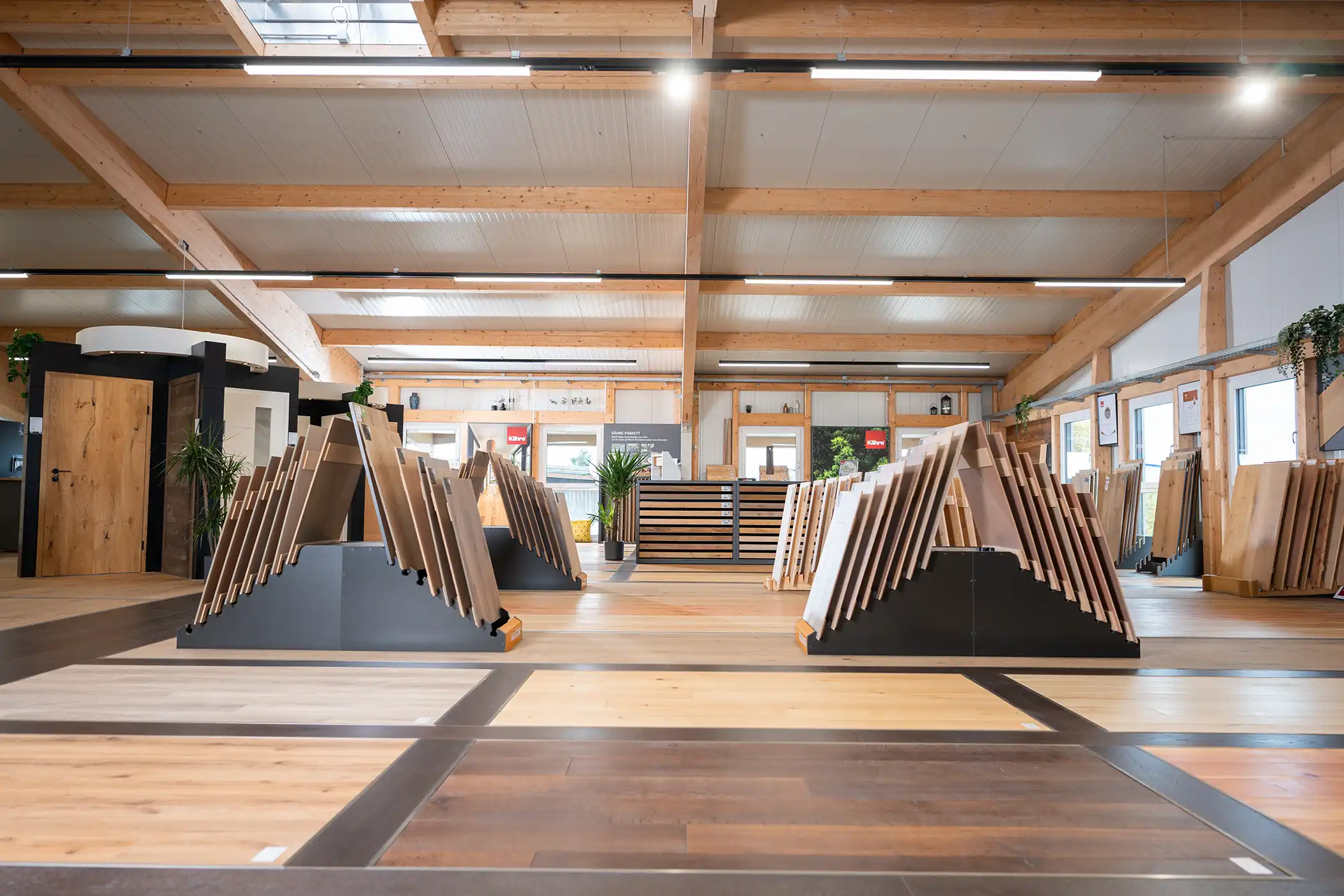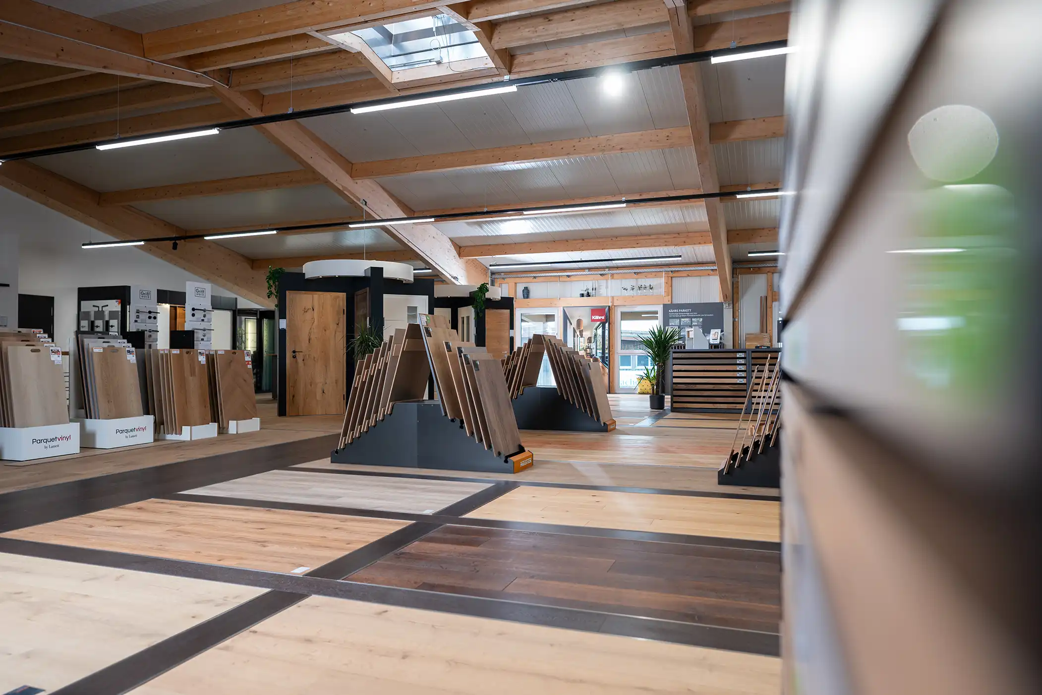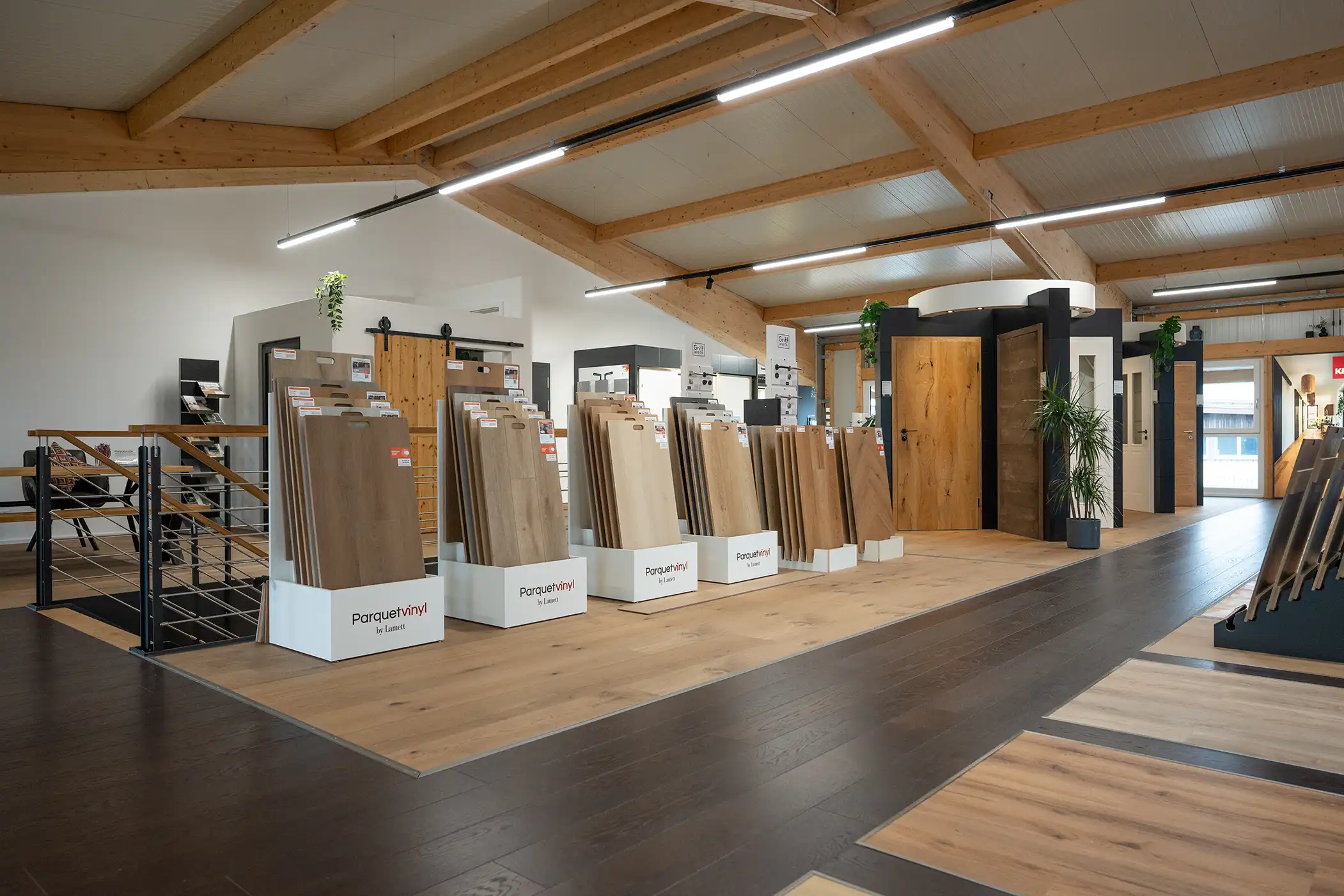 Wir, Familie Embacher und das gesamte Team, laden Sie herzlich ein, die Vielfalt rund ums Wohnen und Bauen mit Holz zu entdecken. In unserer Ausstellung zeigen wir Ihnen eine große Auswahl an Parkett, Vinylböden, Türen, Terrassendielen und Holzlösungen für Haus und Garten – präsentiert auf 700 m² inspirierender Ausstellungsfläche. So bekommen Sie ein gutes Gefühl dafür, welche Materialien, Farben und Oberflächen am besten zu Ihrem Zuhause passen.
